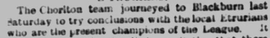 • Champions of 1893-94 were Blackburn Etrurians, as confirmed by a newspaper report in a game the following season: